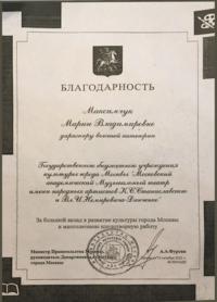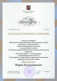 Апрель 2009 г., Москва. Мария Максимчук удостоена Грамоты